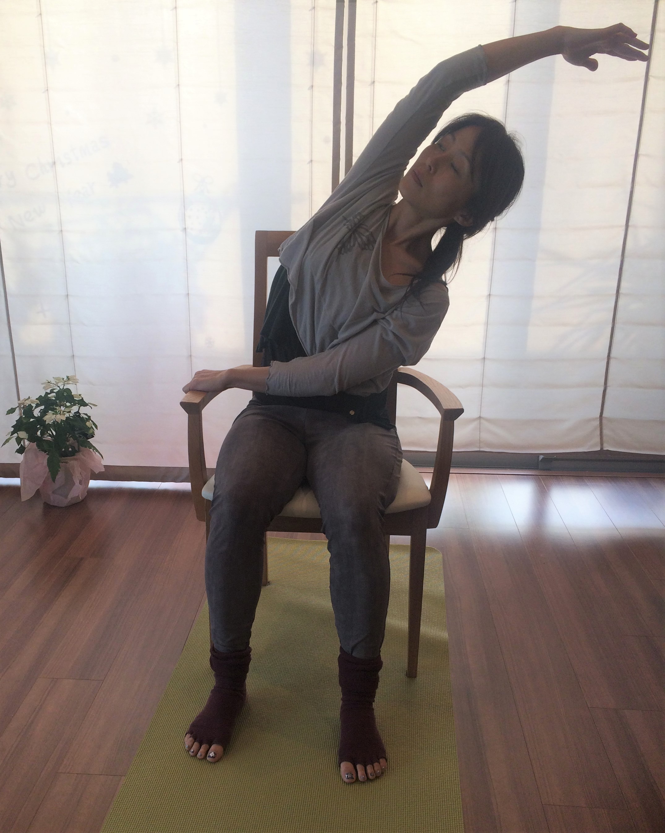 (アームチェアヨガ<体側を伸ばすポーズ>)