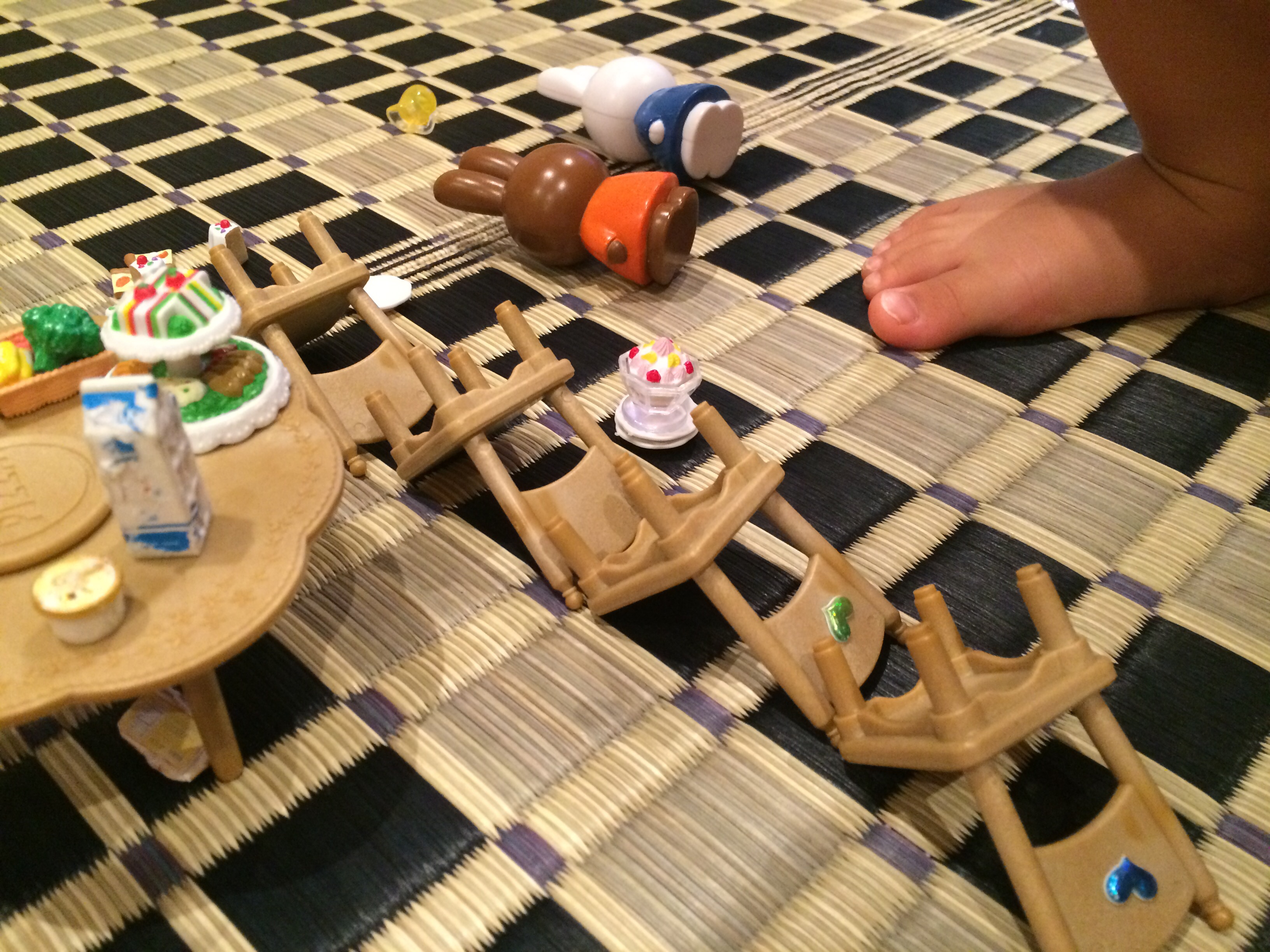 椅子を軒並み伏せているから、立たせようとしたところ、怒られたのだ。