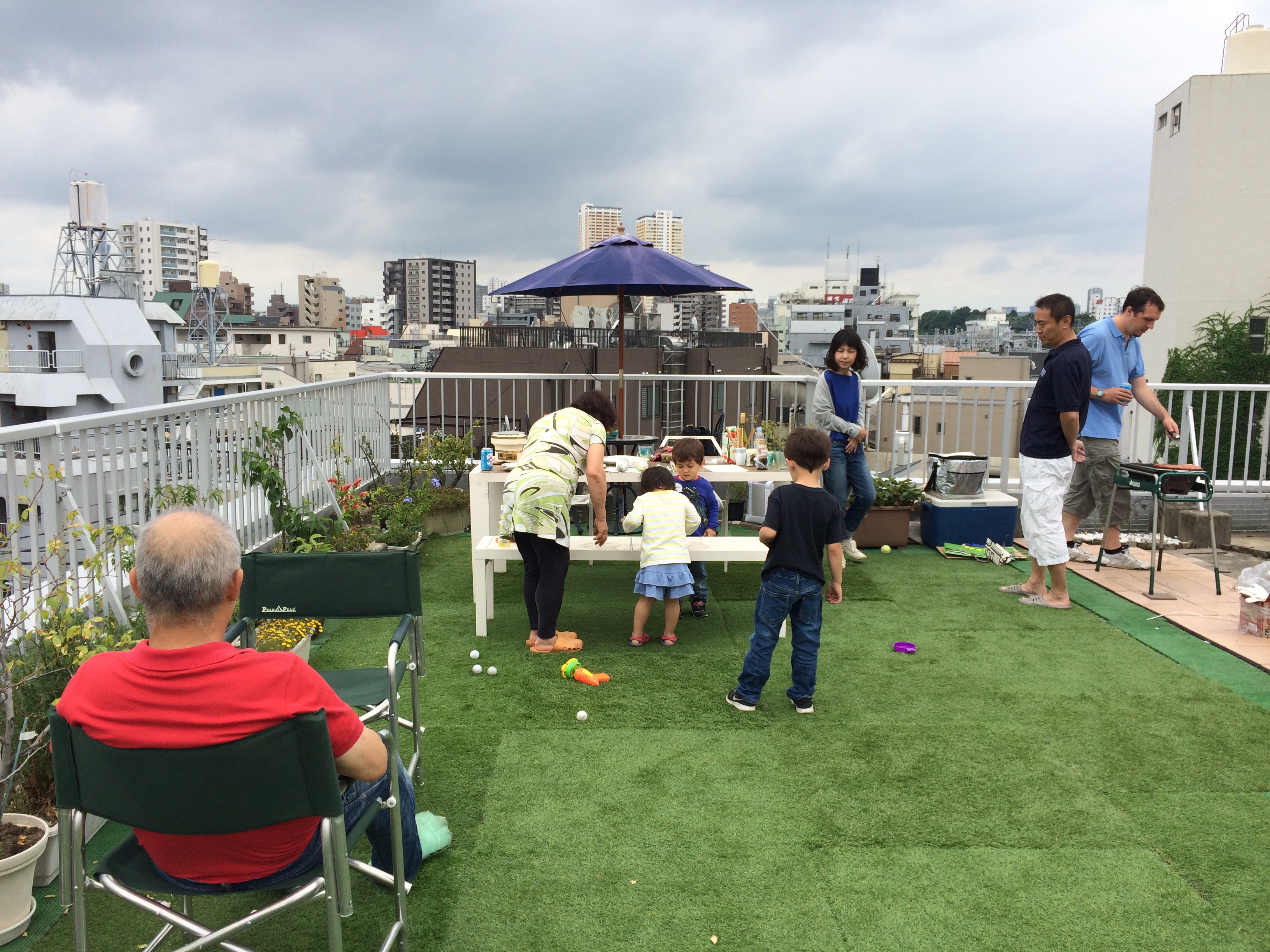 フローラ田端の屋上でパラソルが開いている日は、バーベキューの可能性が高いので、見かけた方は連絡ください(笑