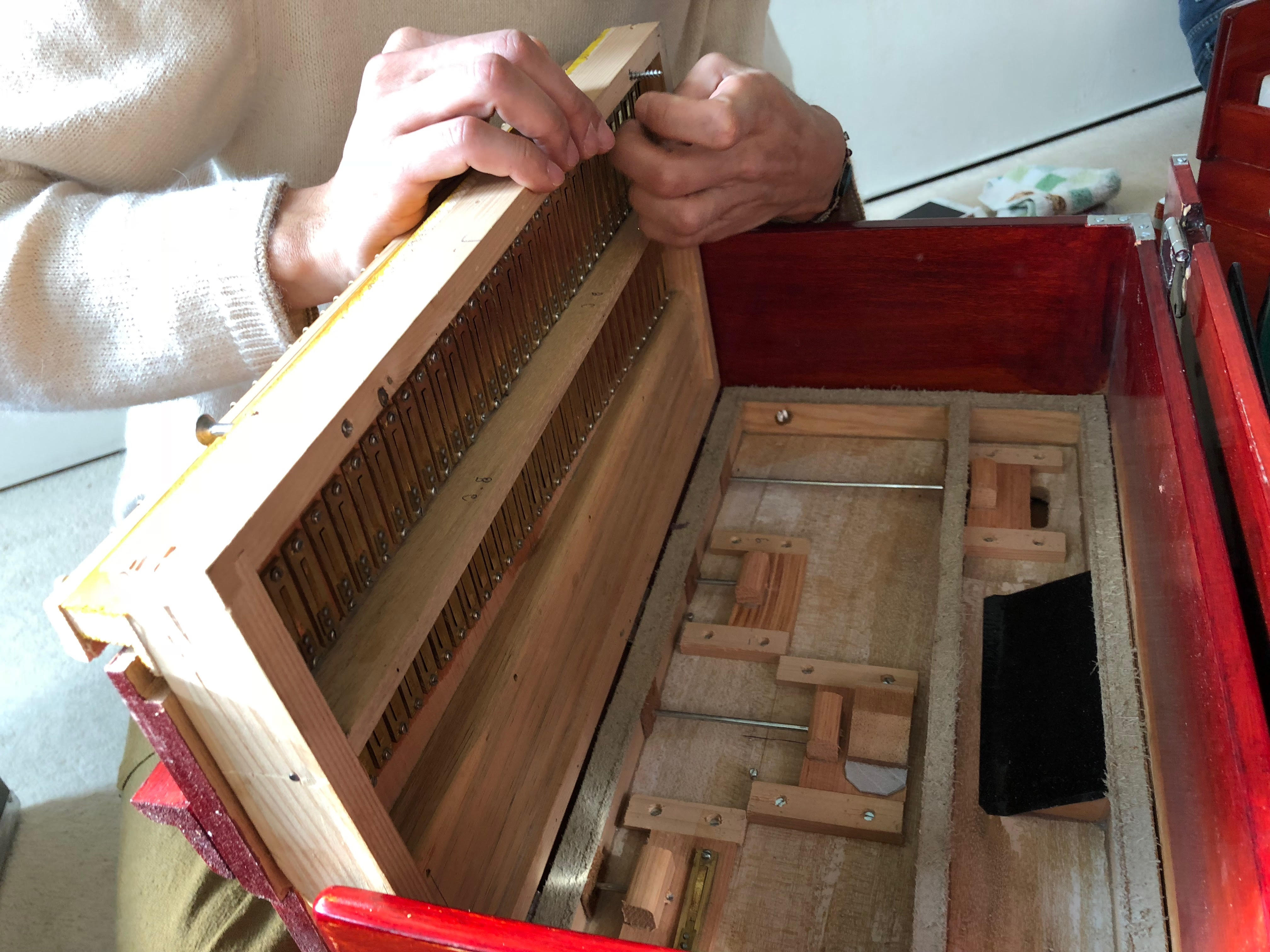 木でできているので湿度などでいろいろ起こるそうで、ジリジリ・・・なんていう音も、金属部分についたホコリや湾曲度合いやらで起きたりするようです。