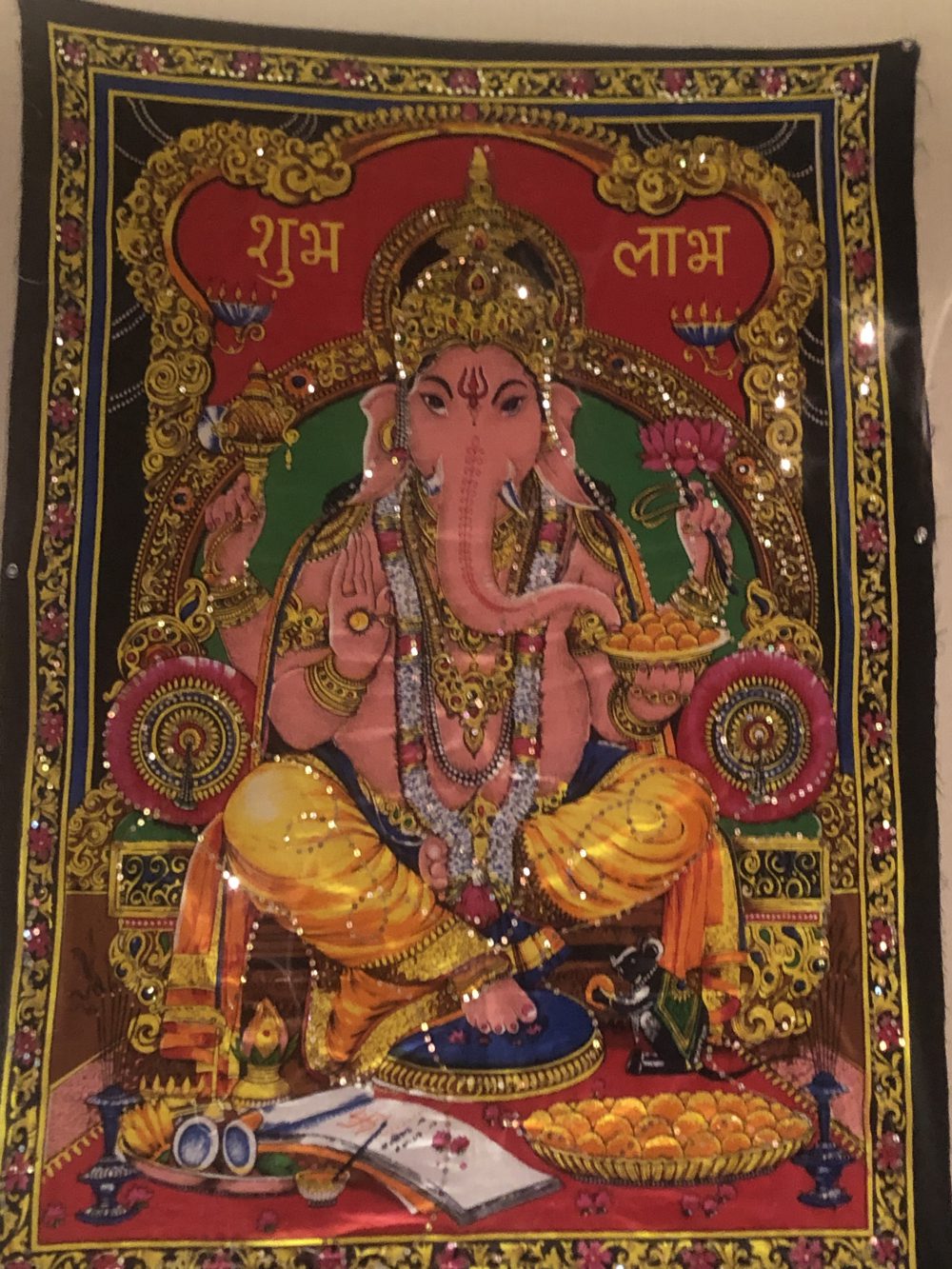 店内の調度品もとてもおしゃれです、壁にいくつもガネーシャの織物が飾ってありました。