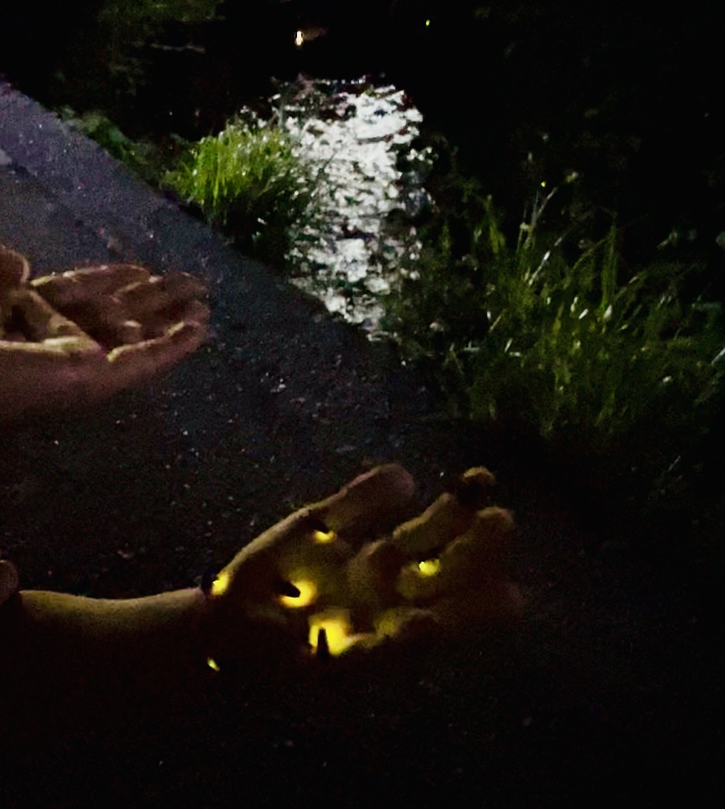 しかも蛍って手を広げても、さっと飛んでいかないんですね。