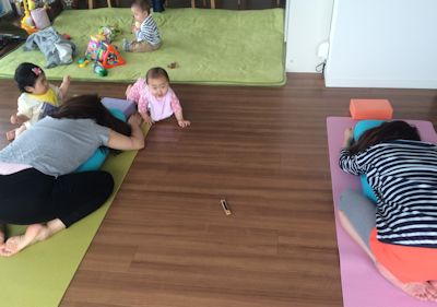 でもママ達のレッスン中、ベビーたちが仲良く遊でる姿をみると、ホントにほのぼのとしていて、いろんな意味で産後ヨガのレッスンは私にとっても癒しの時間です。