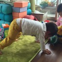 一人が泣き止んだと思えば、もう一人が泣き出したり、ママたちを中々ヨガに集中させてくれません。(笑