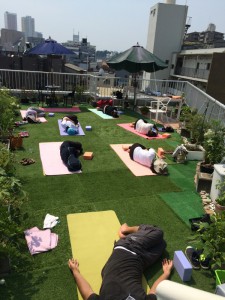 先週の日曜は、晴天も晴天、風はあるものの暑い中の屋上ヨガになりました。