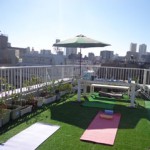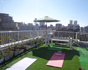 緑や公園の少ない東京で、一番空に近い場所「屋上」。屋上に緑あふれるお庭を持つオーナーに場所をお借りして、心地よい季節限定で開催しています。※真夏、真冬は、お休みです。